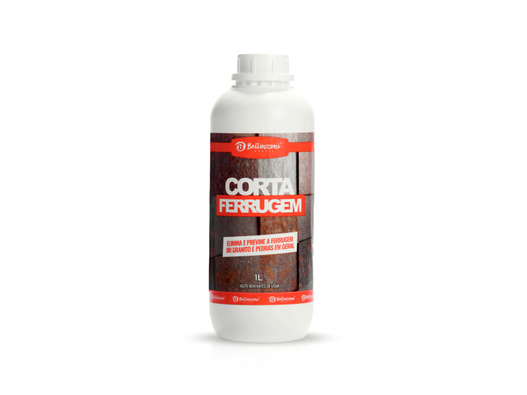 O Corta Ferrugem da Bellinzoni é um removedor de ferrugem à base de ácido, especialmente formulado para combater oxidação natural em granitos e outras pedras. Além de eliminar manchas, o produto previne o surgimento de novas áreas oxidadas. A Bellinzoni, líder no mercado de produtos químicos para pedras ornamentais, garante a eficácia do Corta Ferrugem, que também é eficiente na limpeza de resíduos resistentes como cimento e rejunte.